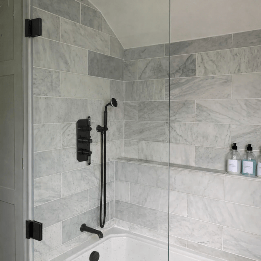 The glass bathroom screen comes with hinges in your choice of colour, plus a seal along the base and wall sides.